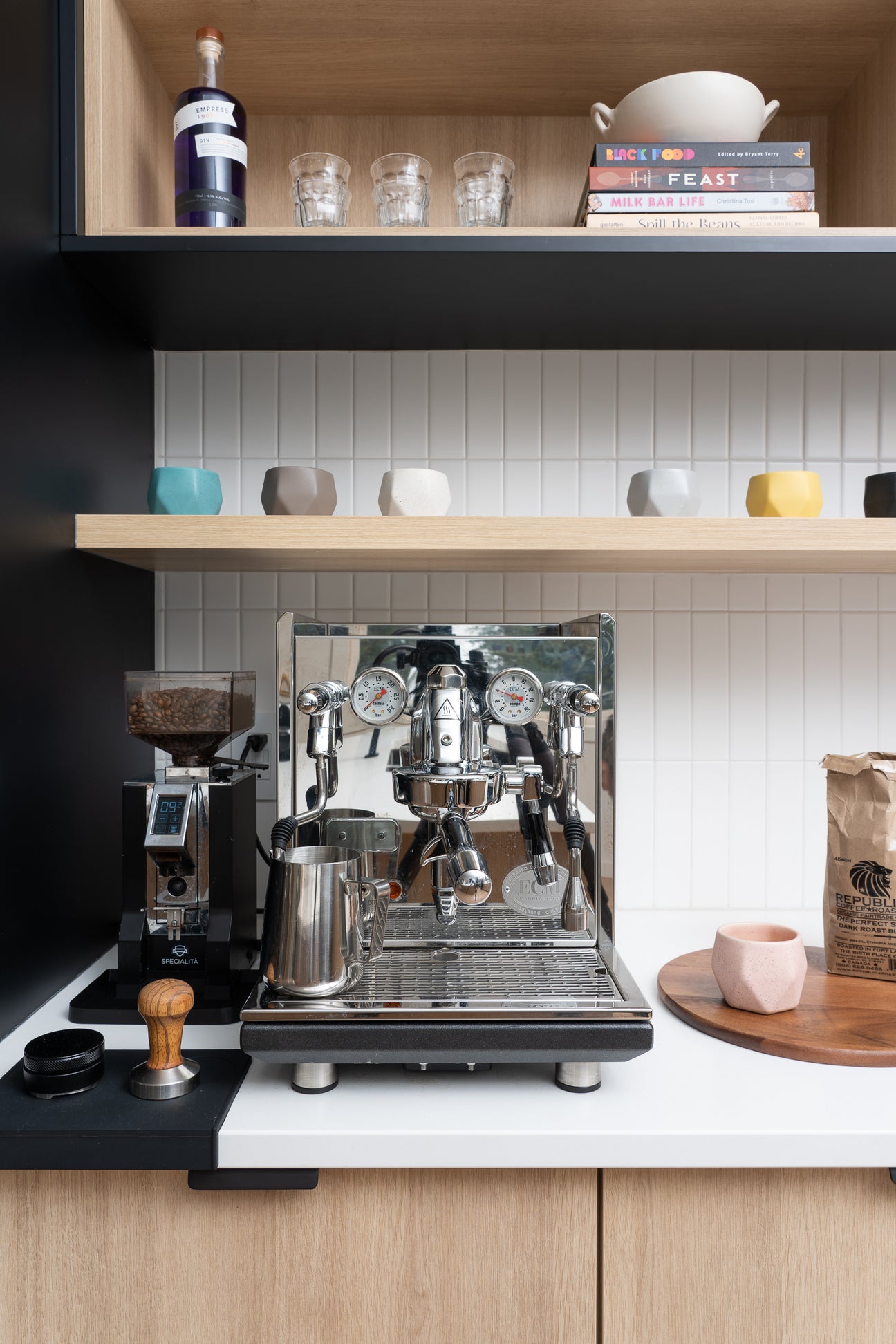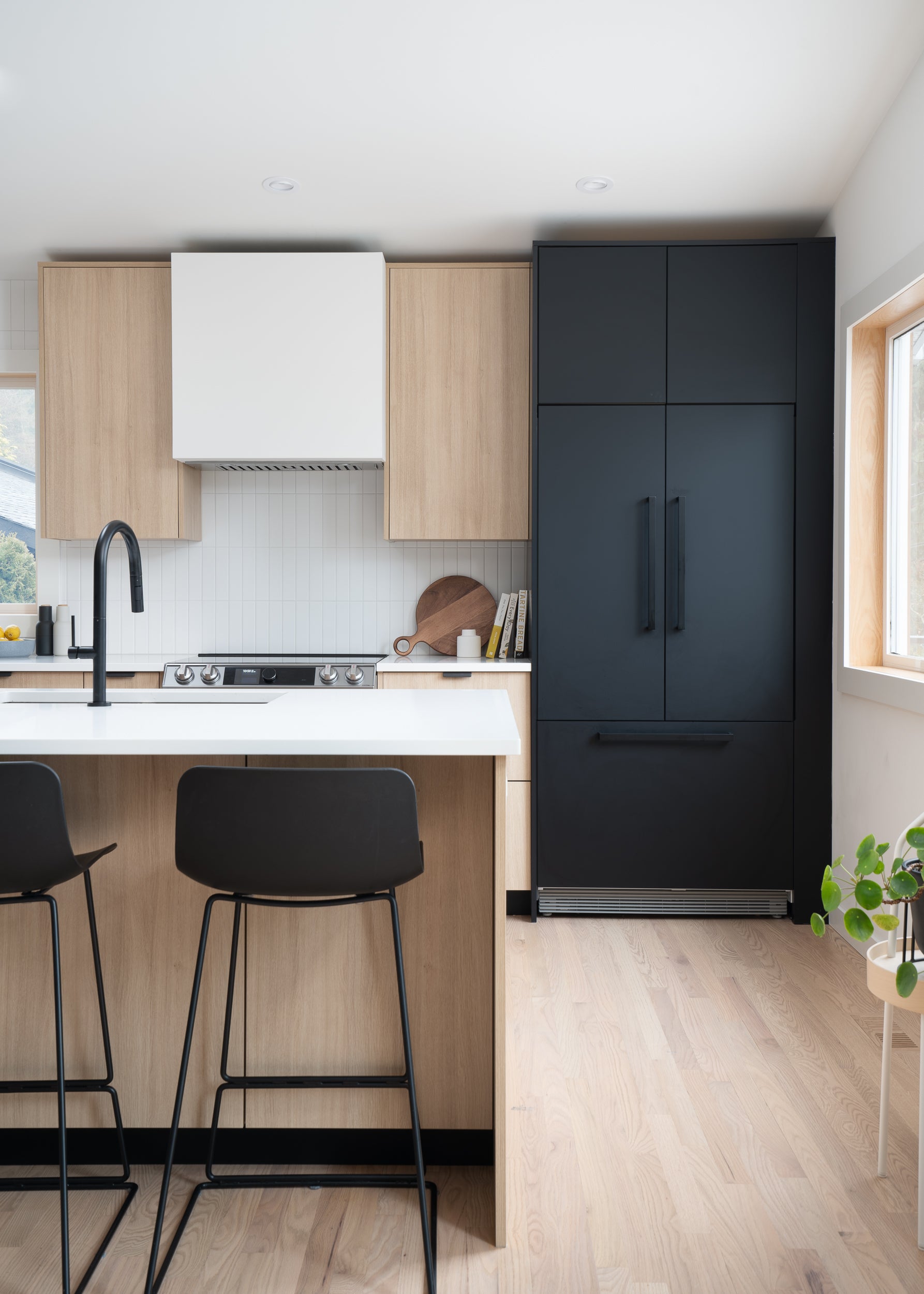 This kitchen went from a truly bizarre layout to a wide-open, bright, and playful family space perfect for sunny hangouts and shared cooking experiences. The original layout included a dated breakfast bar on the island that made the kitchen feel boxed in and awkward appliance placement causing more harm than good during dinner prep. Swede design partner RNJ Interiors worked with the homeowners to reconfigure the generous footprint to increase functionality by creating a new layout allowing the island to double in size, storage to increase, and solving all their functionality issues. Special care and attention were given to creating a dedicated coffee bar to house the homeowner's professional coffee setup. We've officially got morning coffee envy!