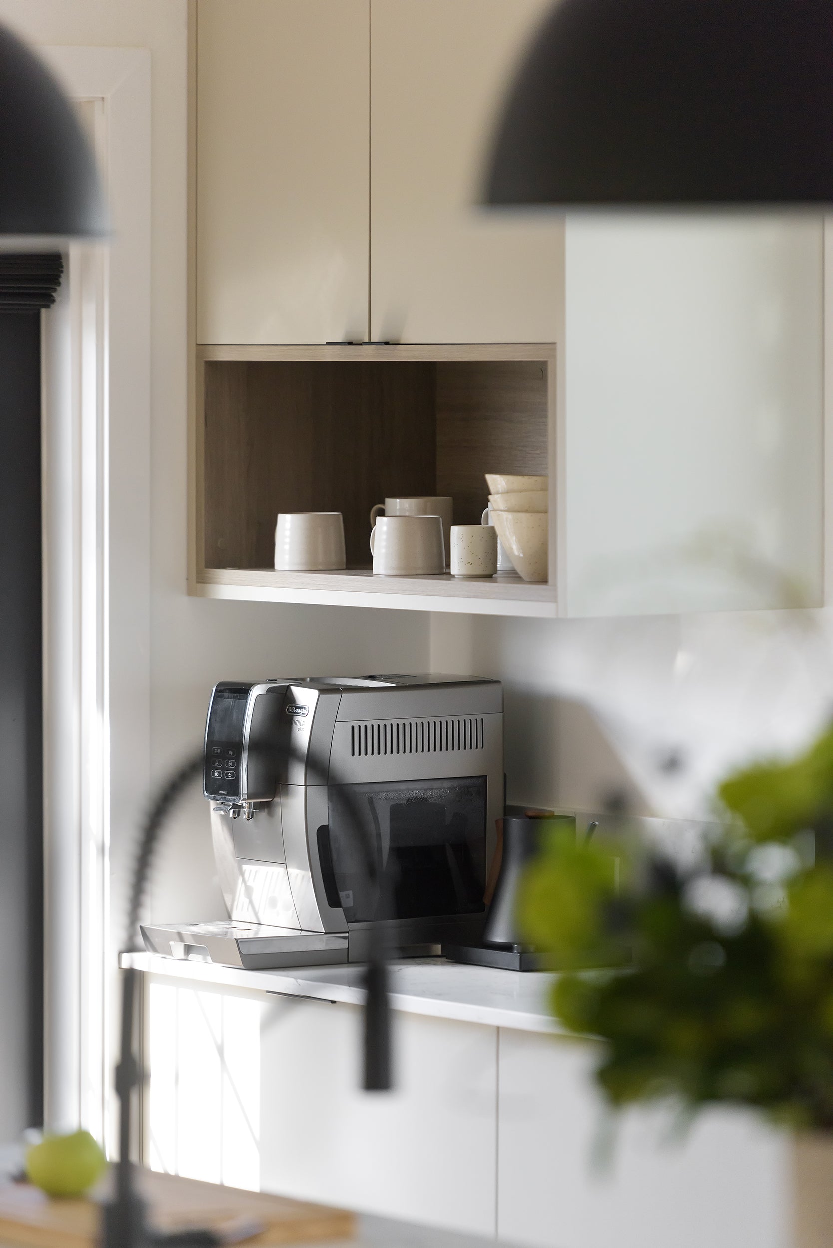 "We had the opportunity to completely change the location of the kitchen within the home, to not only make it bigger but also give it direct access to their patio and outdoor space. This kitchen design is a balance of asymmetry and symmetry - you can see this through the open shelves on the uppers and along the range wall."